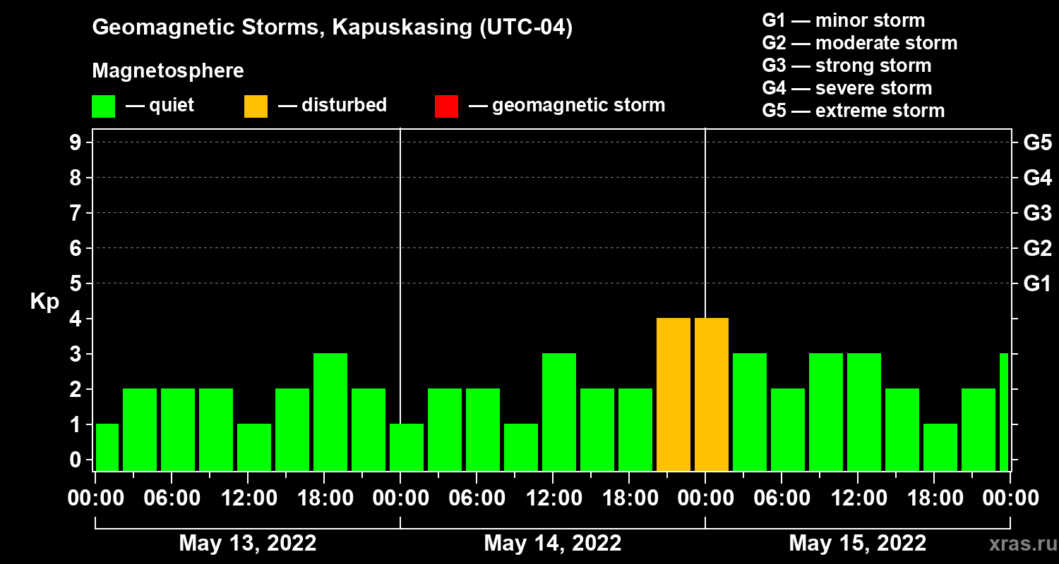 Geomagnetic storms in Kapuskasing on May 15, 2022