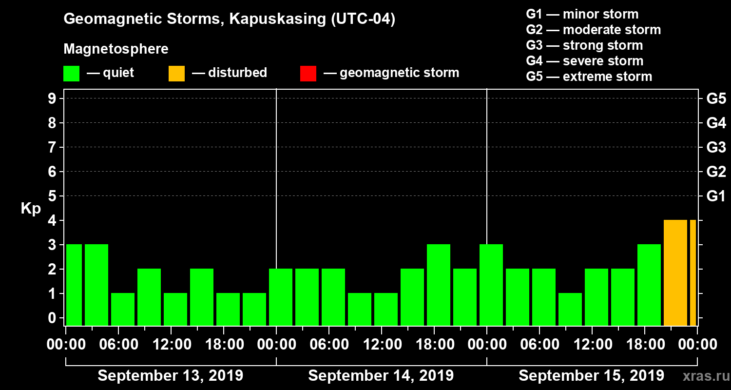 Geomagnetic storms in Kapuskasing on Sep 15, 2019