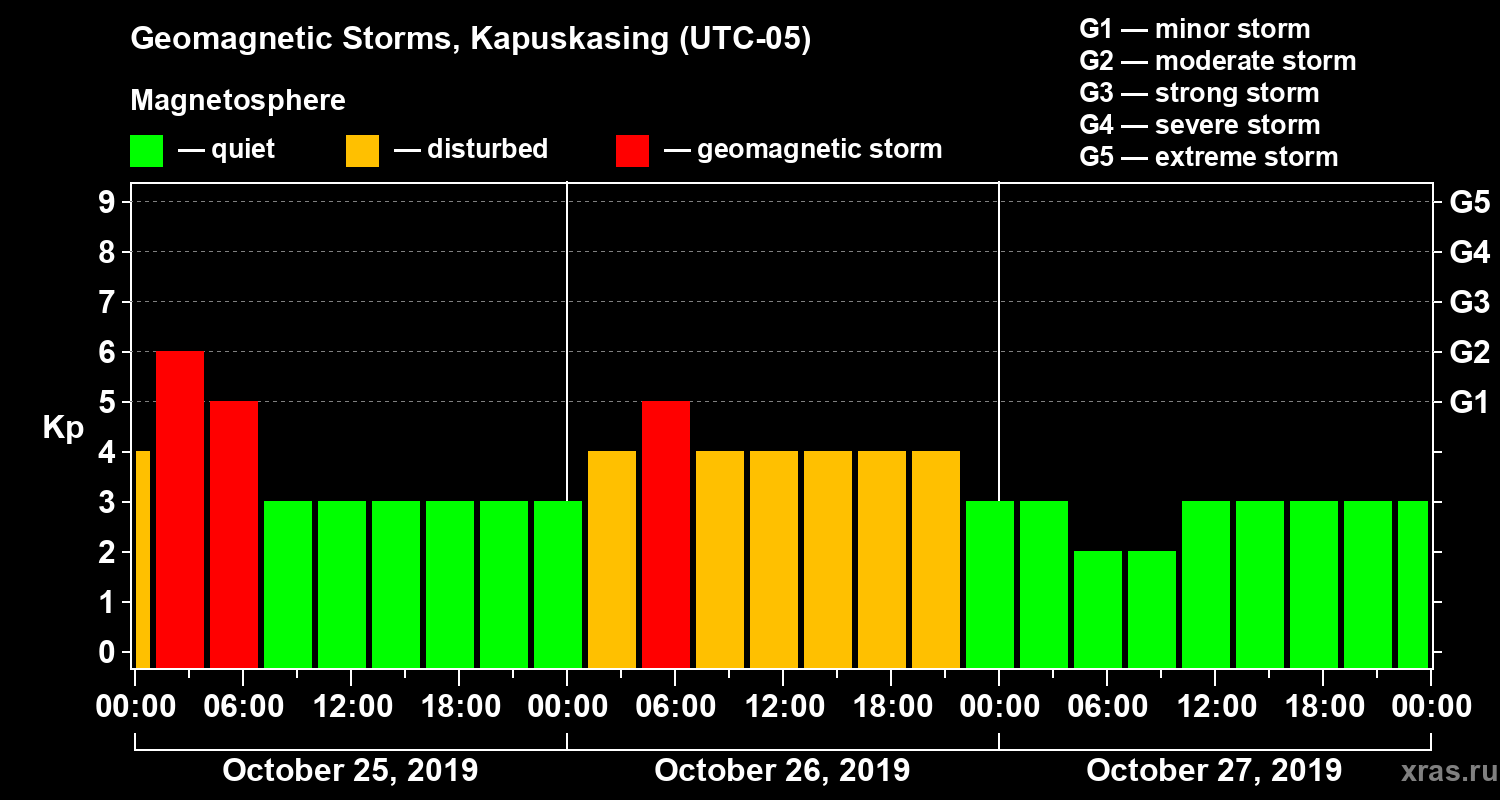 Geomagnetic storms in Kapuskasing in October 2019