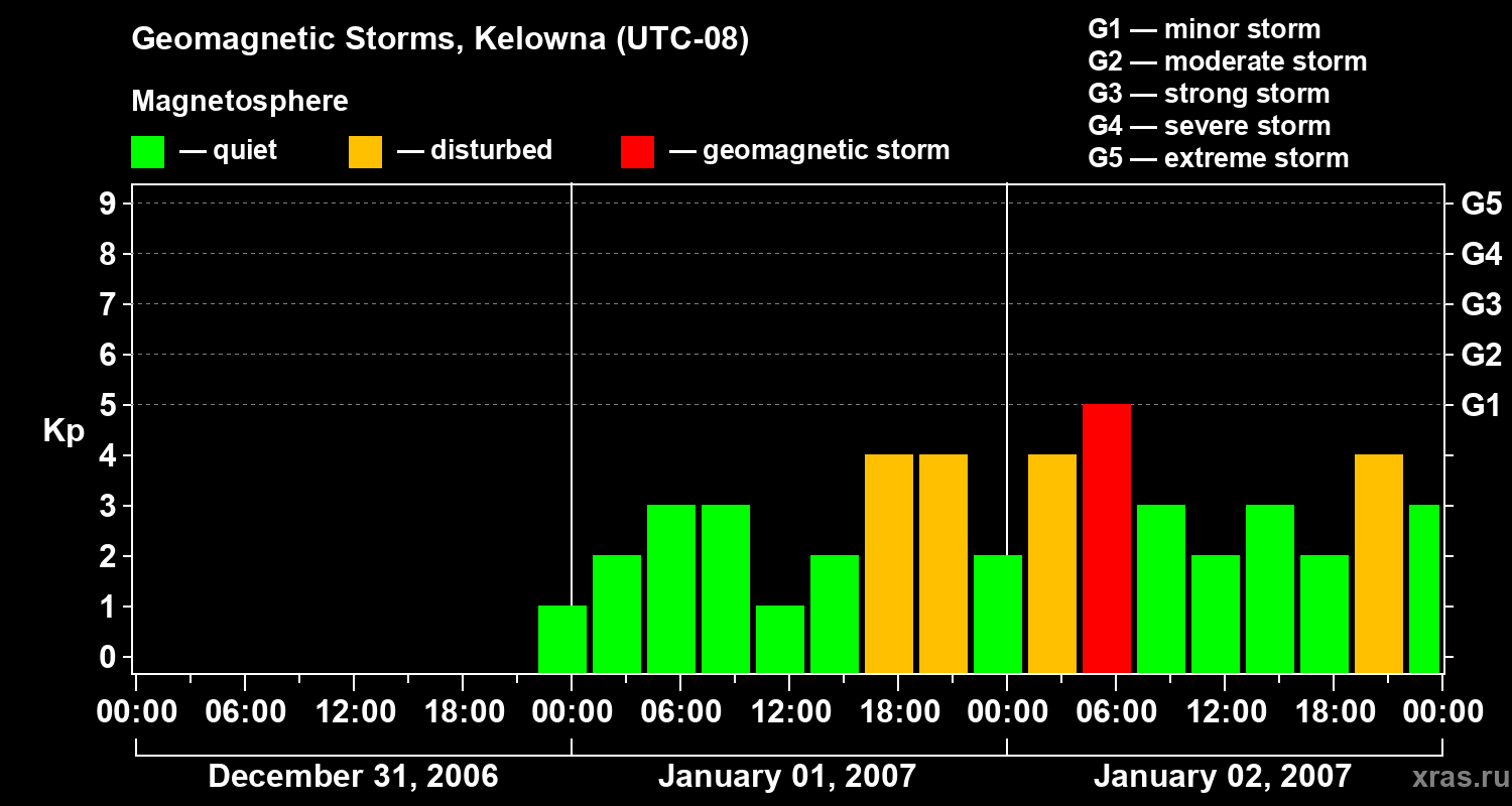 Geomagnetic storms in Kelowna — Jan 02, 2007