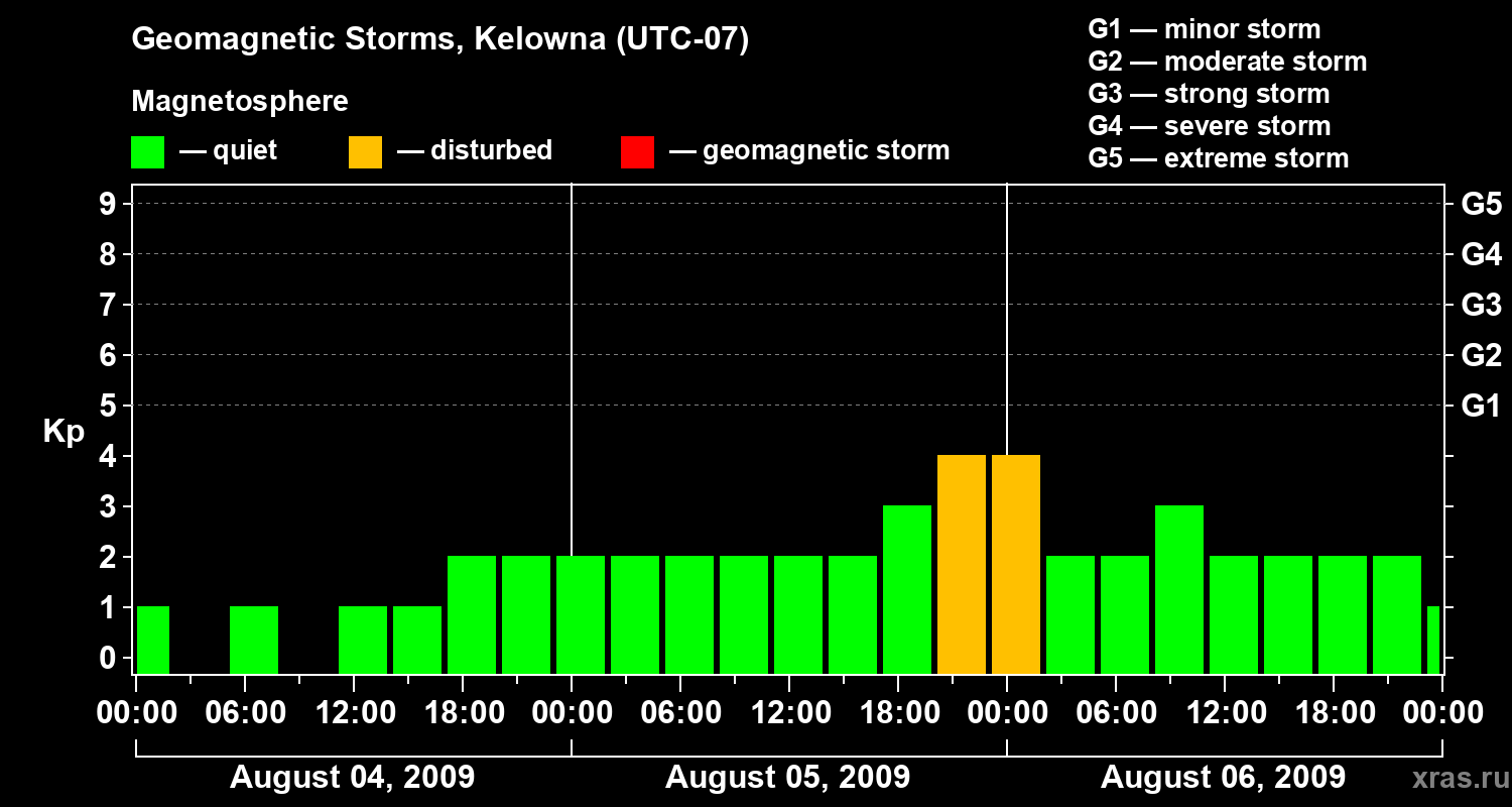 Geomagnetic storms in Kelowna — Aug 06, 2009