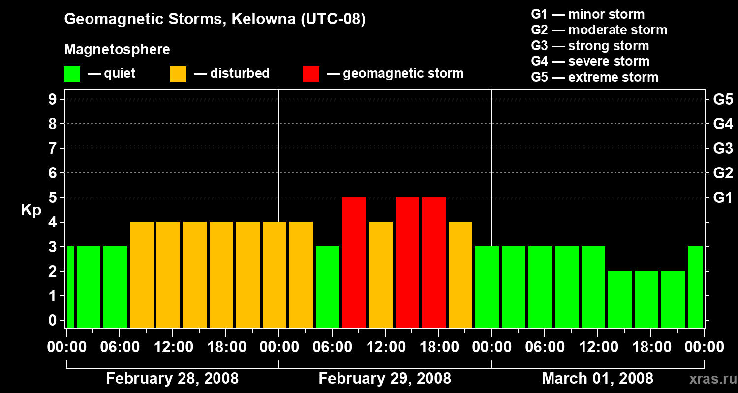 Geomagnetic storms in Kelowna — Mar 01, 2008
