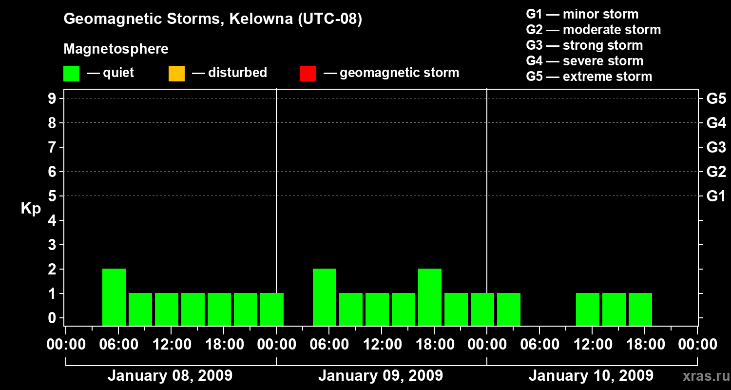 Geomagnetic storms in Kelowna on Jan 10, 2009