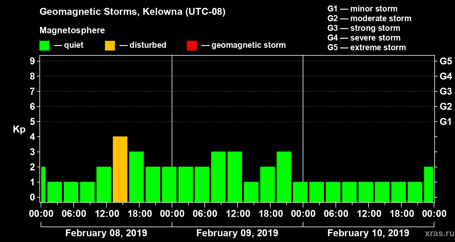 Geomagnetic storms in Kelowna — Feb 10, 2019