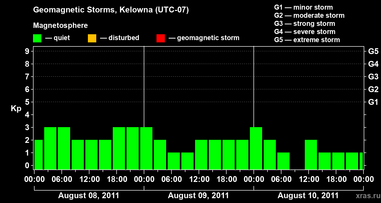 Geomagnetic storms in Kelowna in August 2011