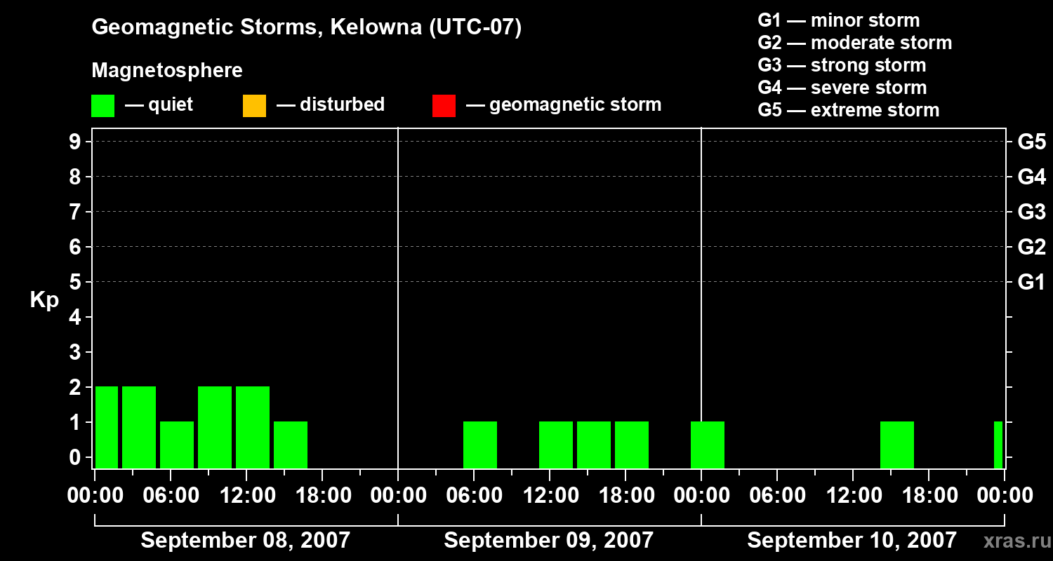Geomagnetic storms in Kelowna on Sep 10, 2007