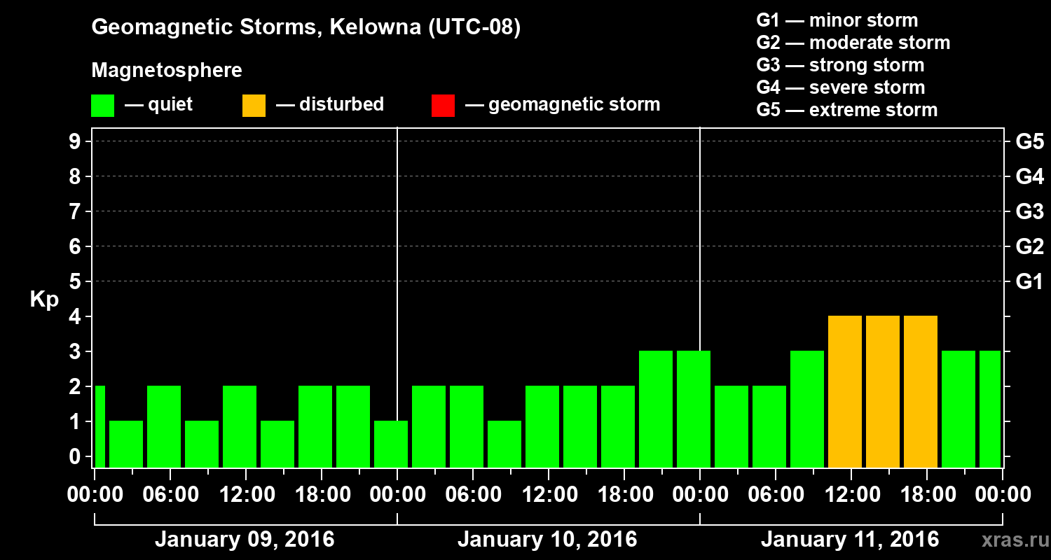 Geomagnetic storms in Kelowna — Jan 11, 2016