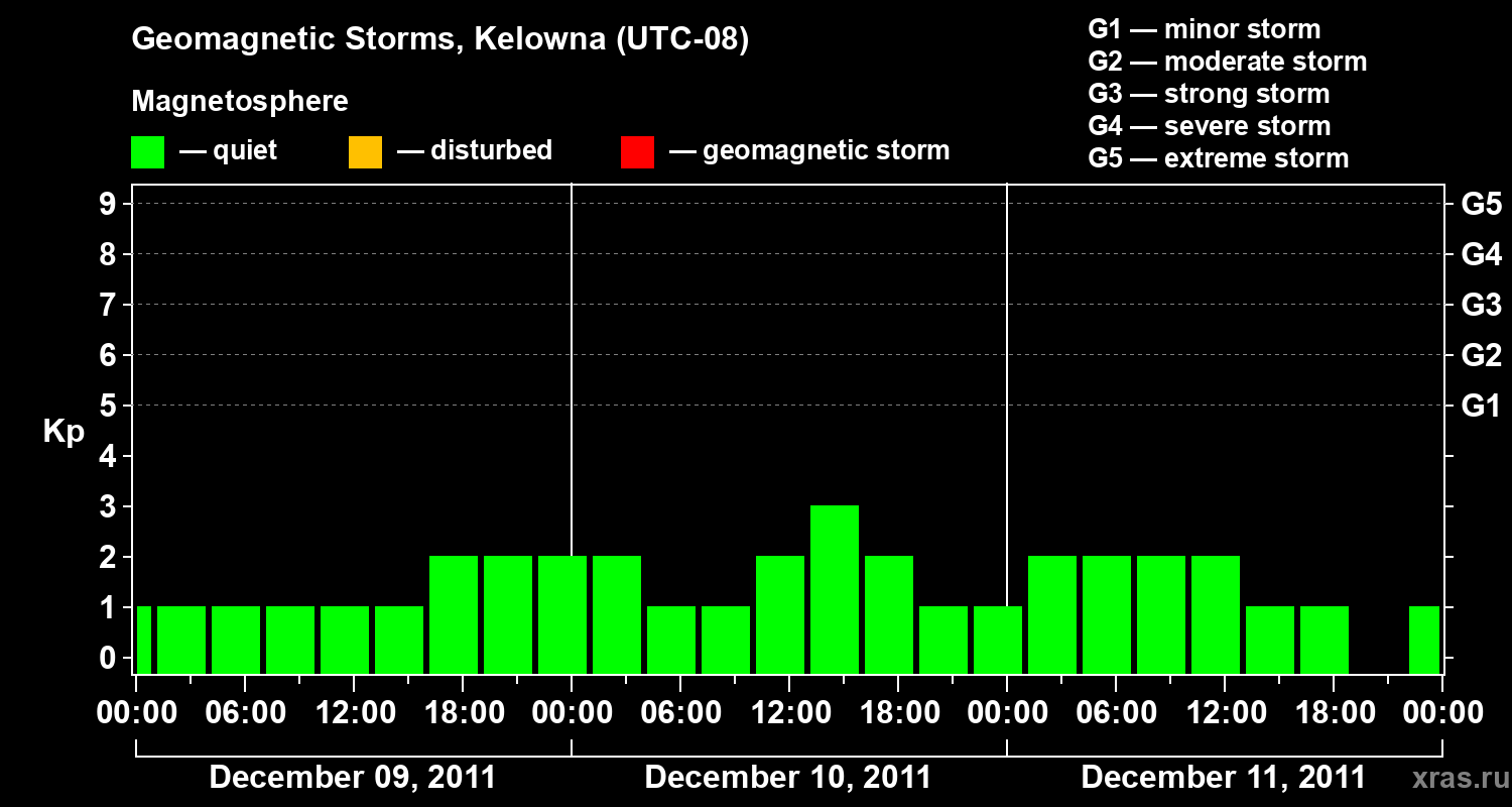 Geomagnetic storms in Kelowna in December 2011
