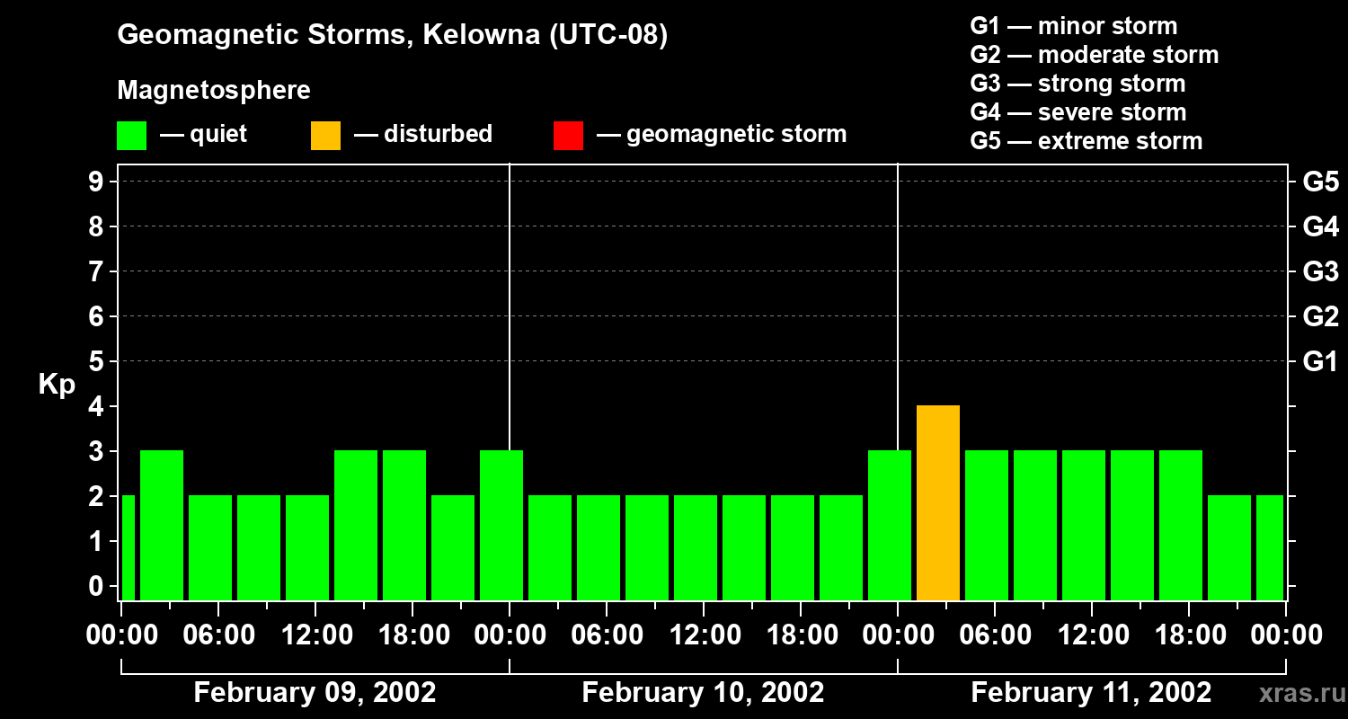 Geomagnetic storms in Kelowna on Feb 11, 2002