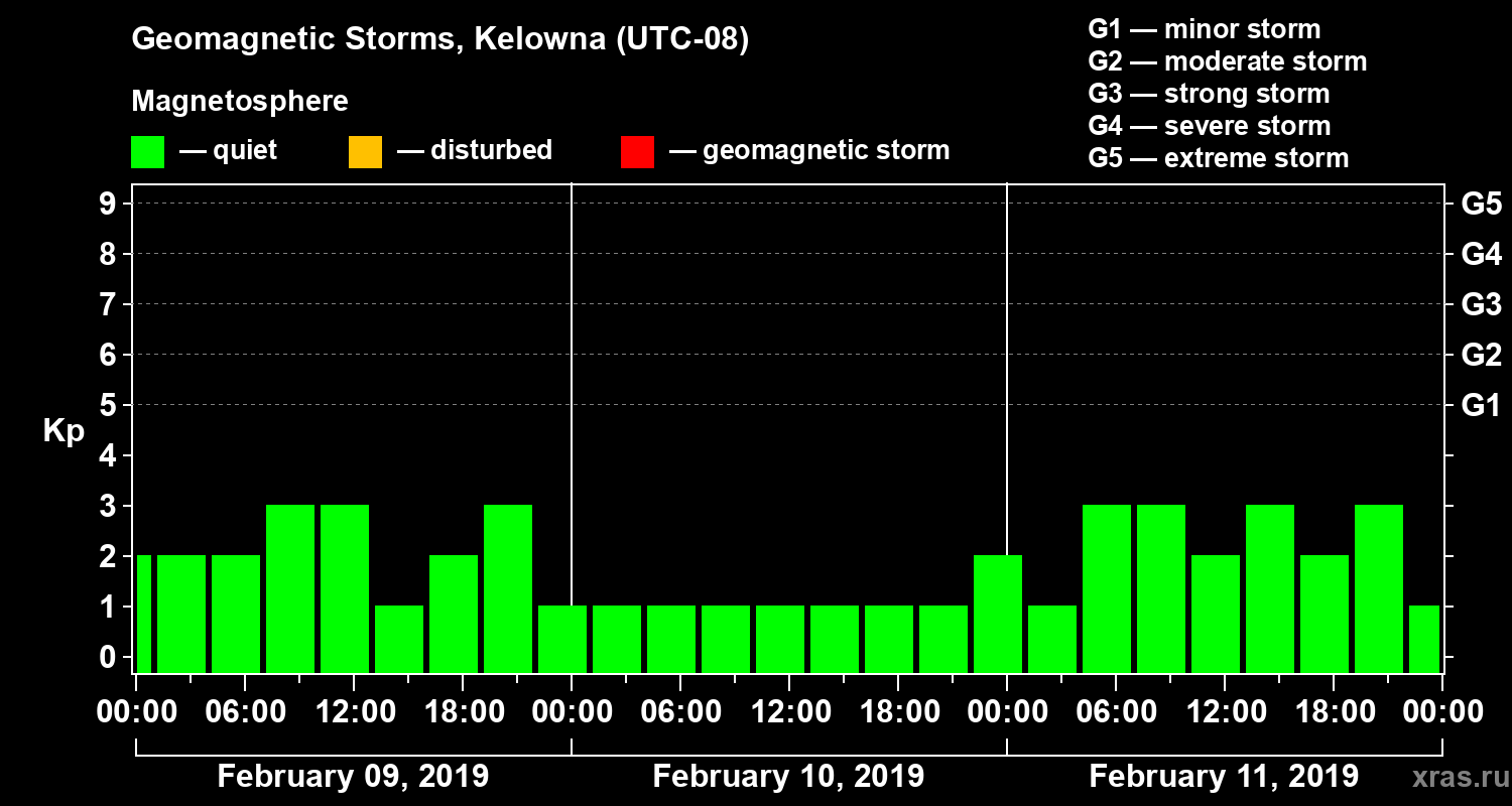 Geomagnetic storms in Kelowna on Feb 11, 2019
