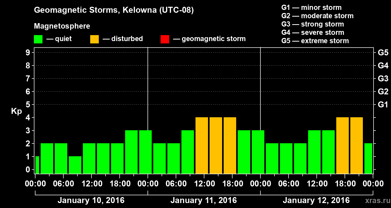 Geomagnetic storms in Kelowna — Jan 12, 2016