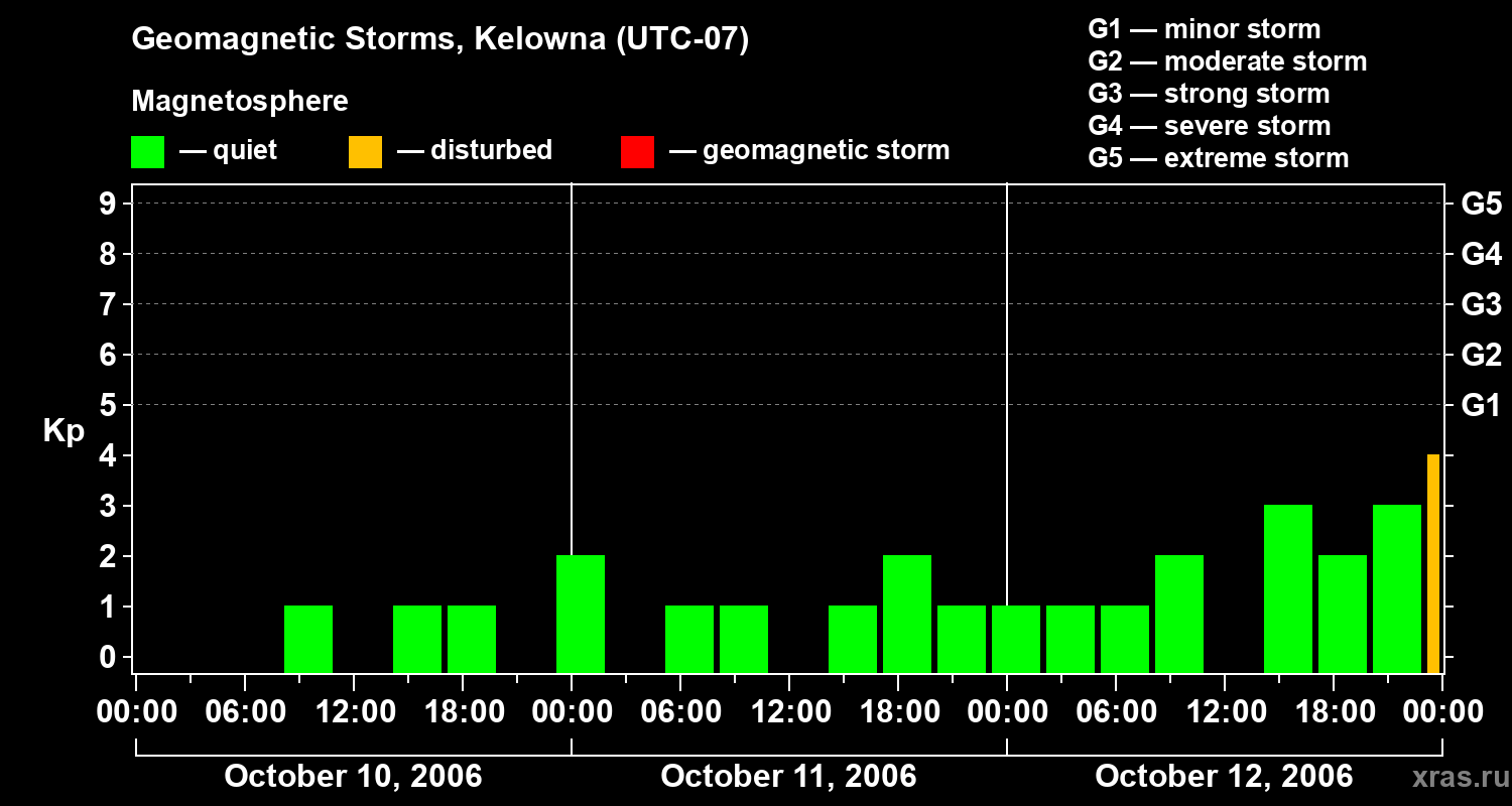 Geomagnetic storms in Kelowna on Oct 12, 2006