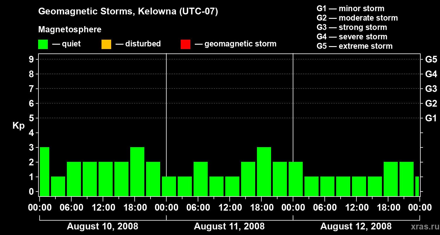 Geomagnetic storms in Kelowna — Aug 12, 2008