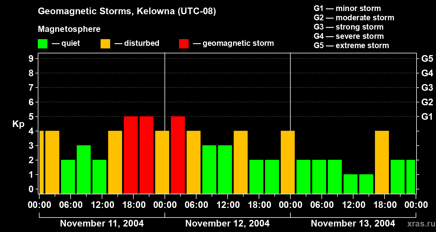 Geomagnetic storms in Kelowna on Nov 13, 2004