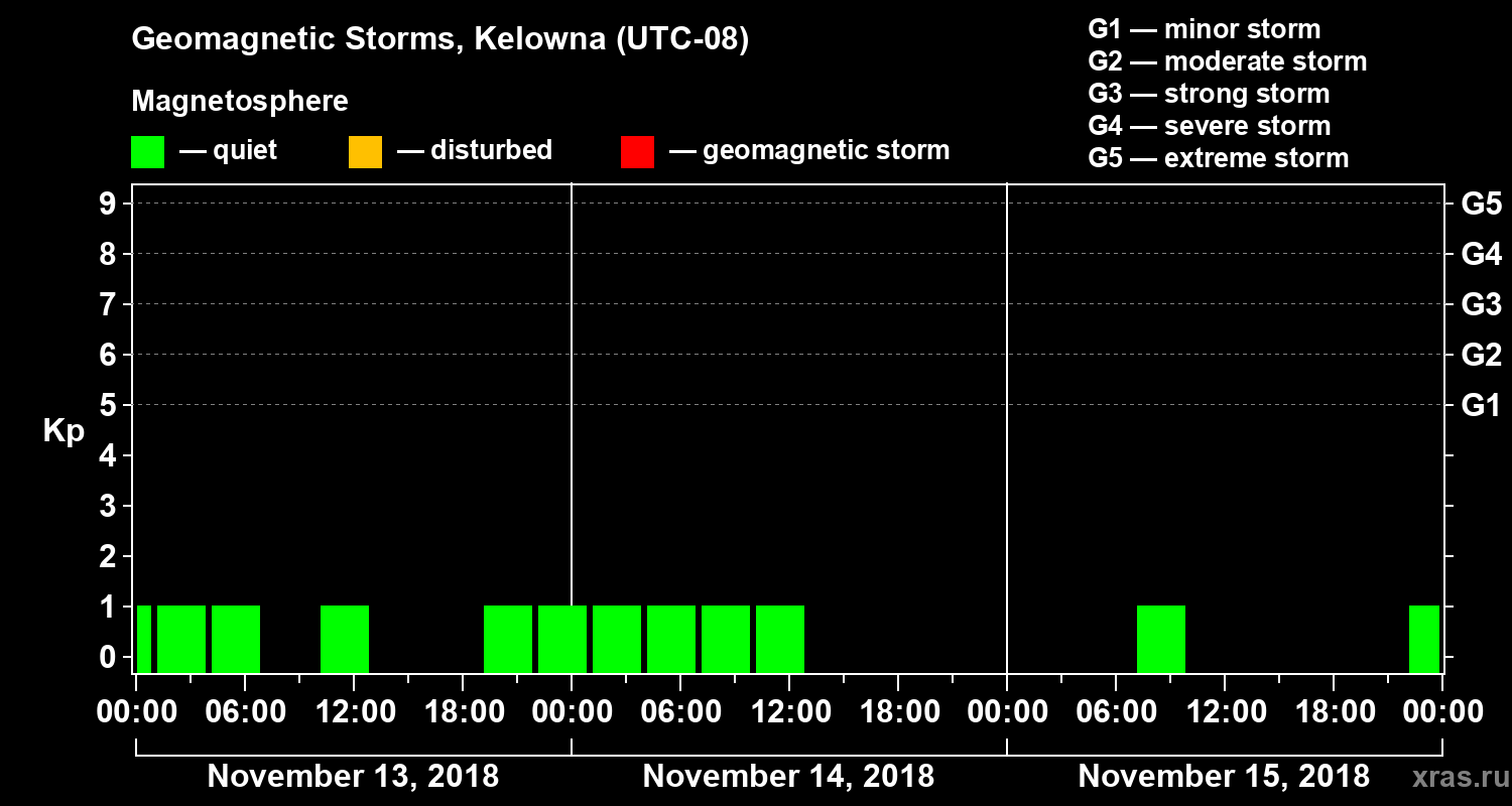 Geomagnetic storms in Kelowna on Nov 15, 2018