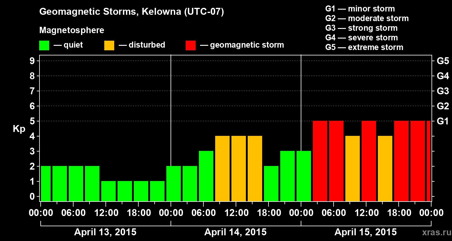 Geomagnetic storms in Kelowna in April 2015