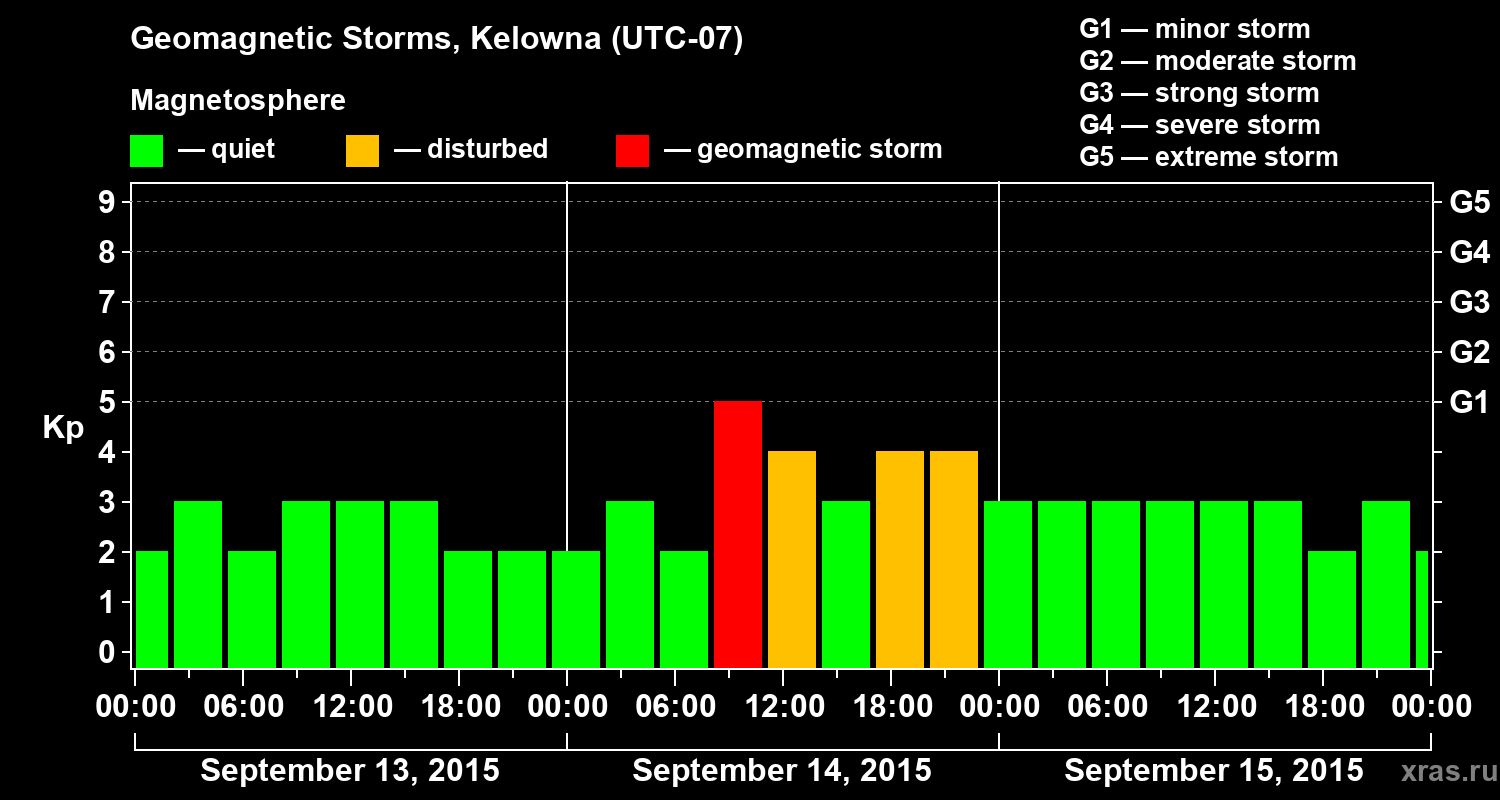 Geomagnetic storms in Kelowna in September 2015