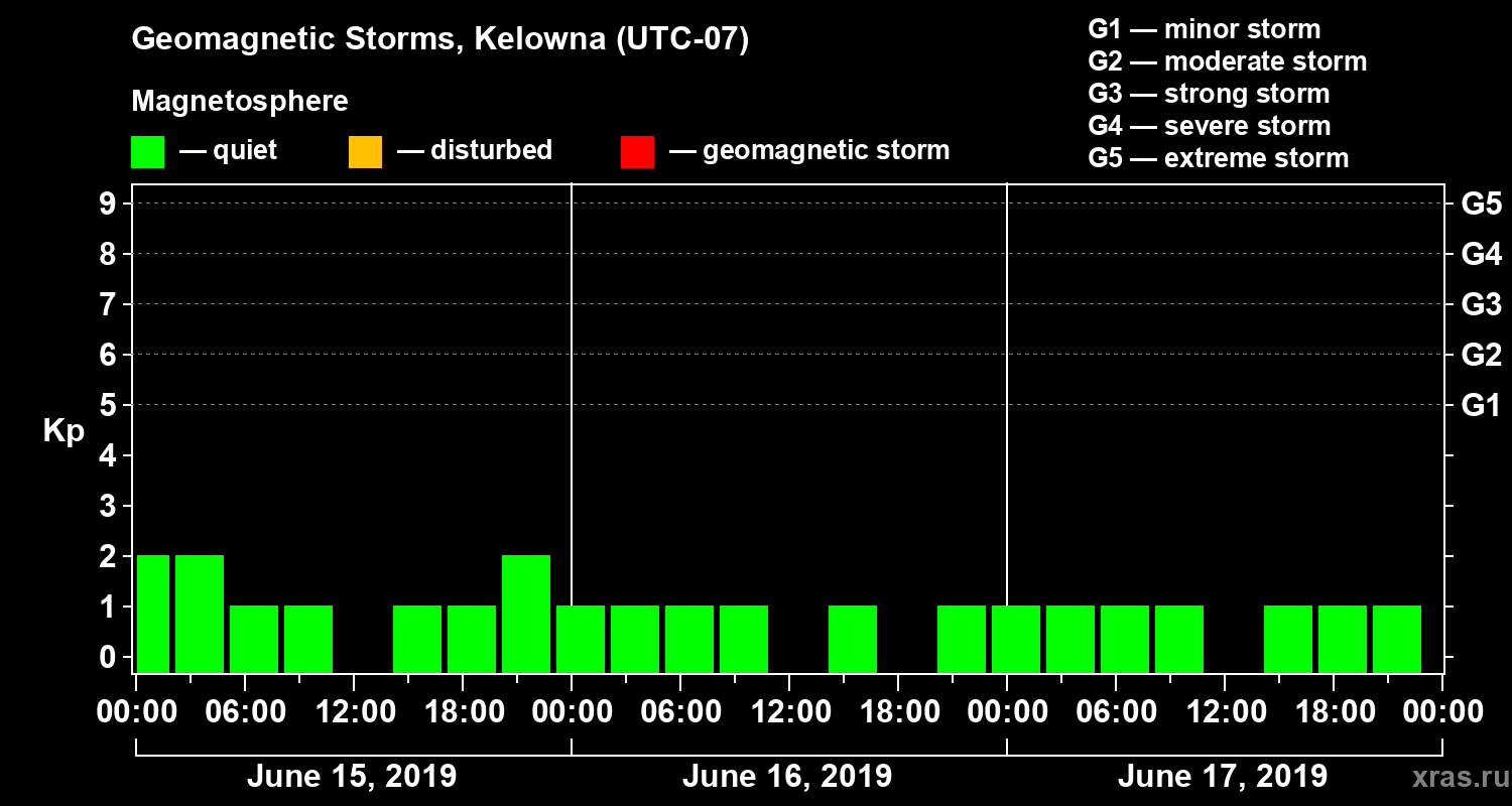 Geomagnetic storms in Kelowna on Jun 17, 2019