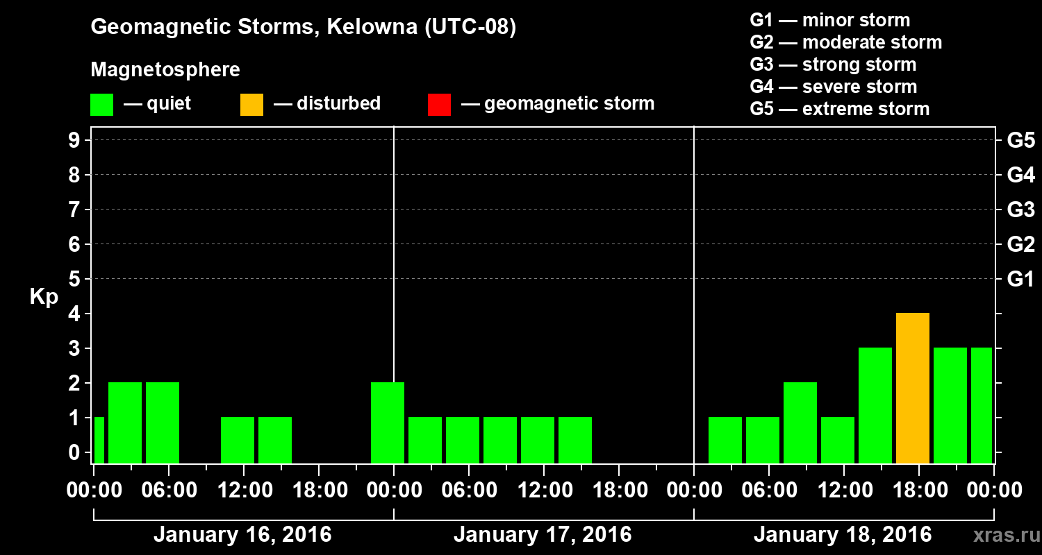 Geomagnetic storms in Kelowna — Jan 18, 2016