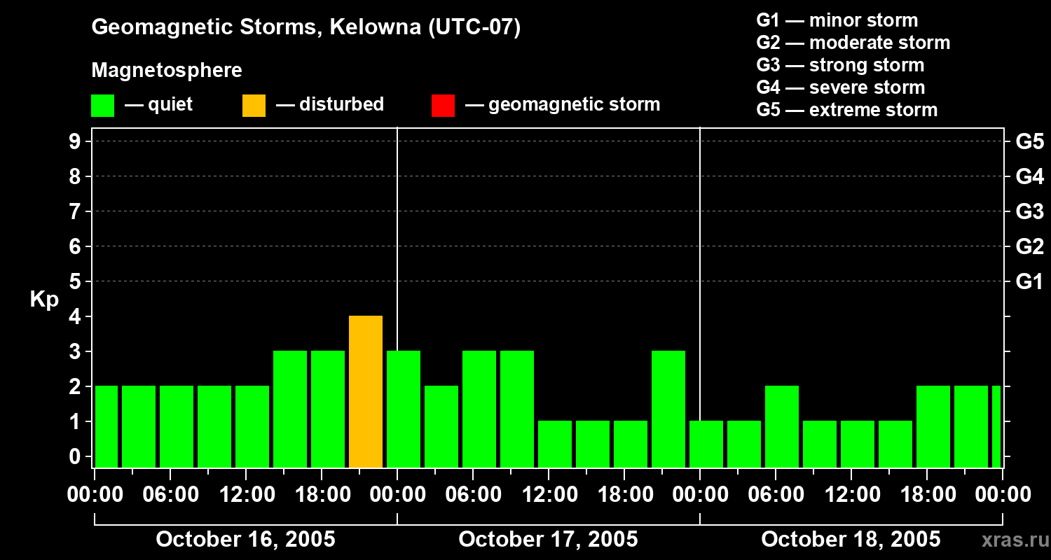 Geomagnetic storms in Kelowna in October 2005
