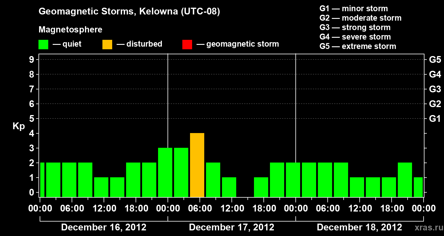 Geomagnetic storms in Kelowna in December 2012
