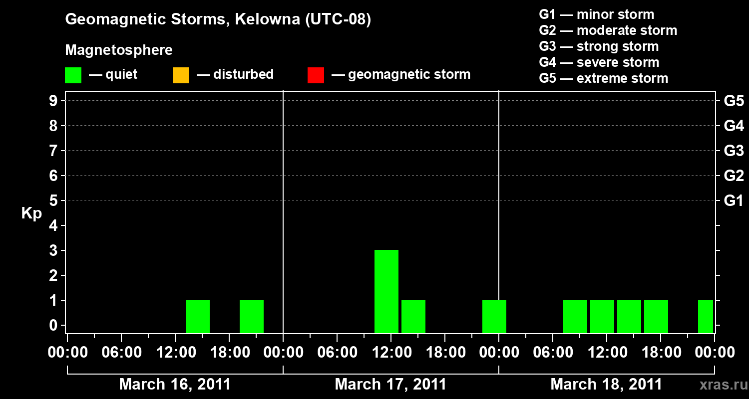 Geomagnetic storms in Kelowna in March 2011