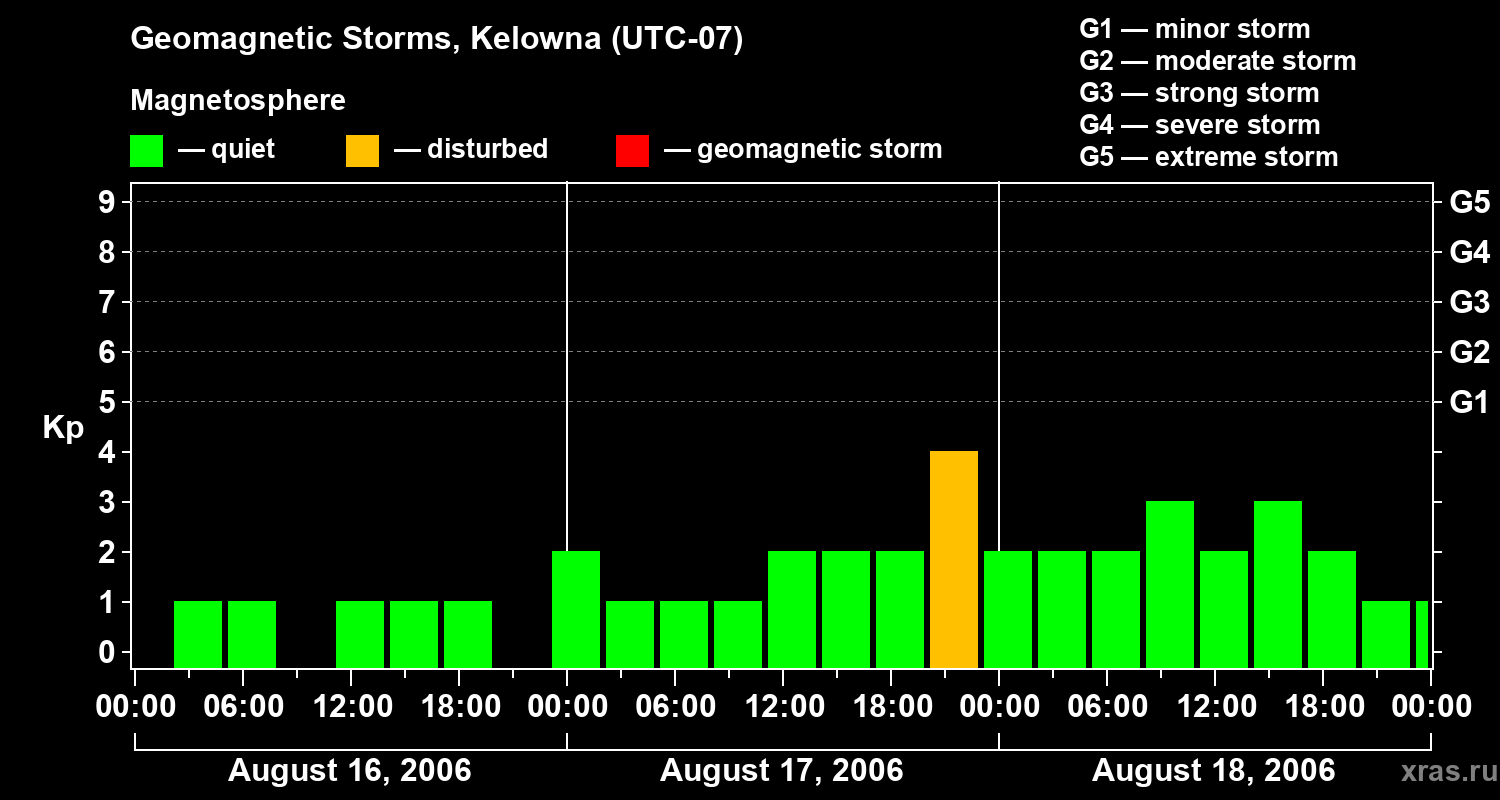 Geomagnetic storms in Kelowna in August 2006