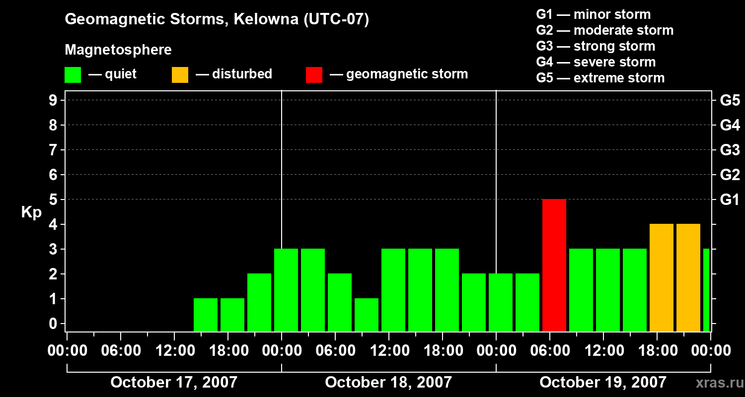 Geomagnetic storms in Kelowna on Oct 19, 2007