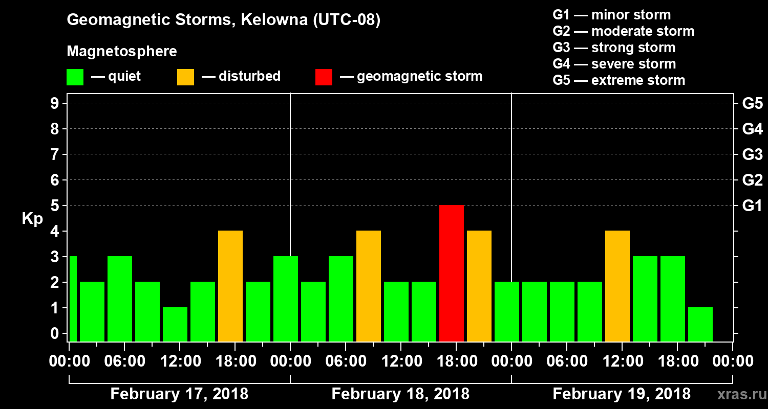 Geomagnetic storms in Kelowna — Feb 19, 2018