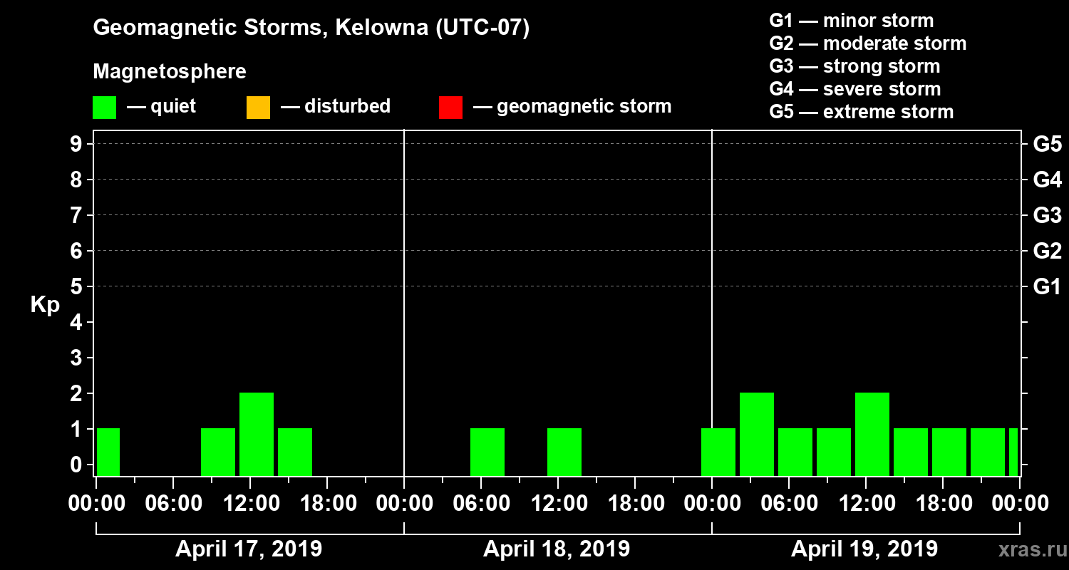 Geomagnetic storms in Kelowna on Apr 19, 2019