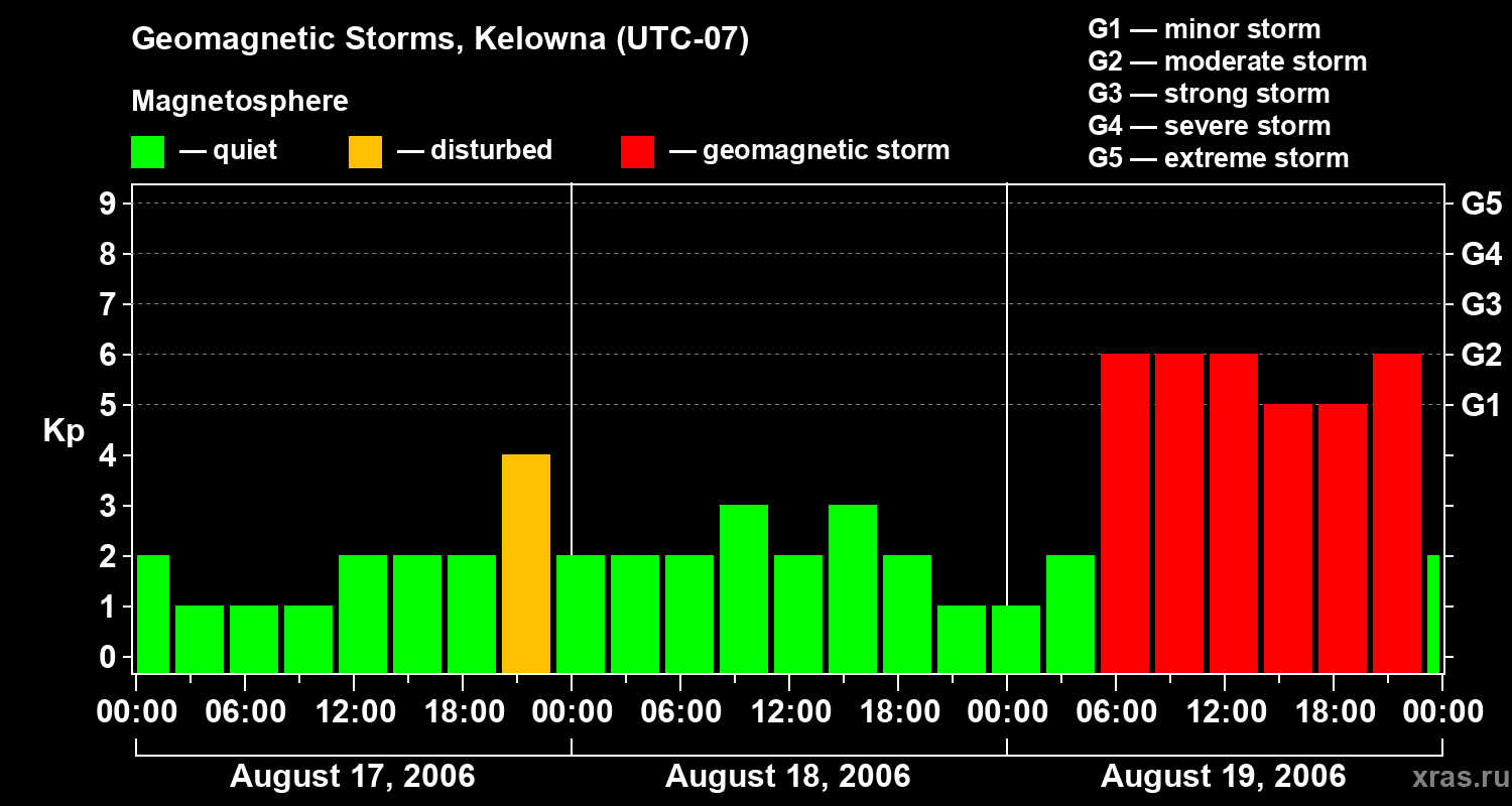 Geomagnetic storms in Kelowna in August 2006
