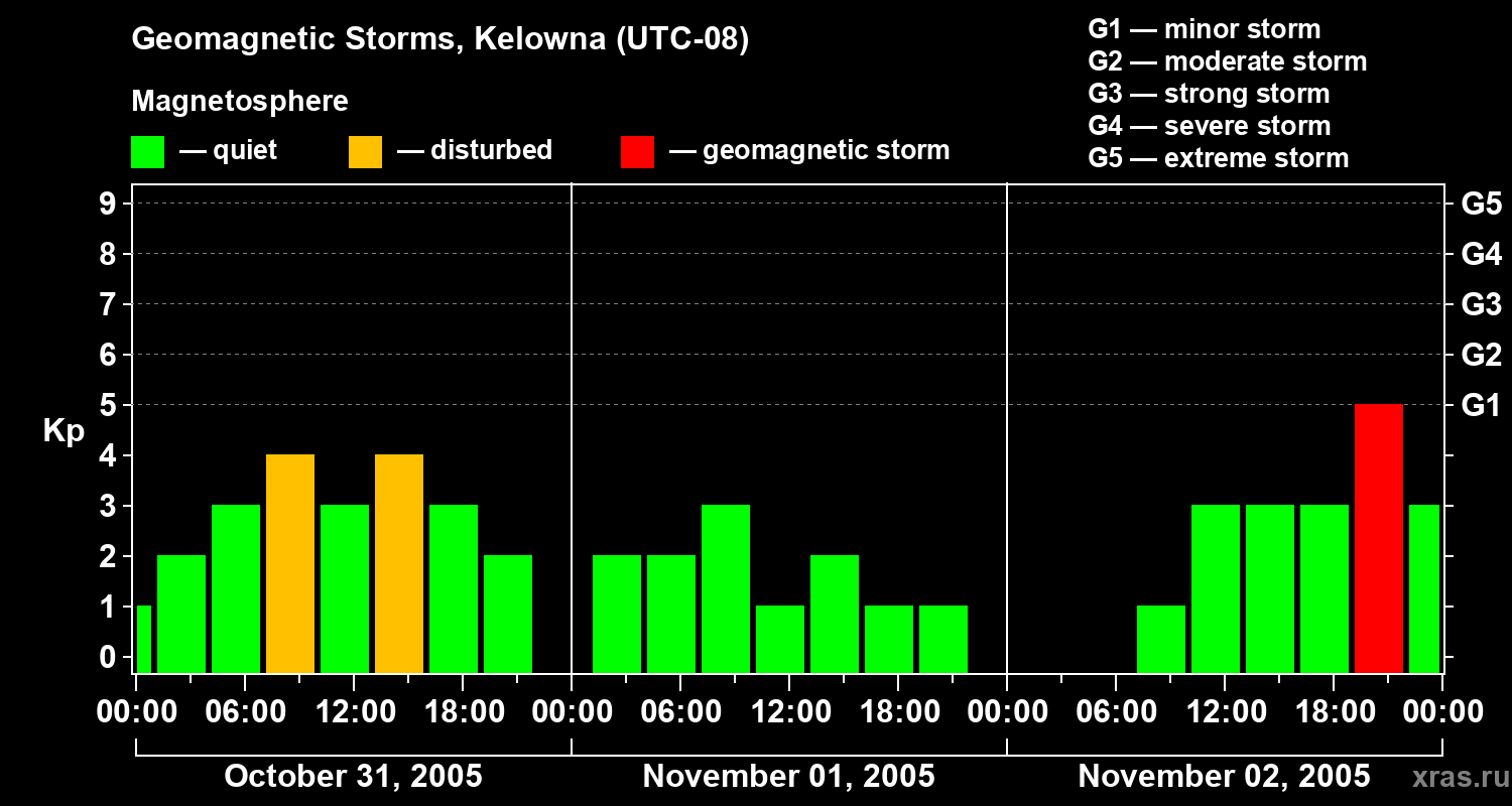 Geomagnetic storms in Kelowna — Nov 02, 2005