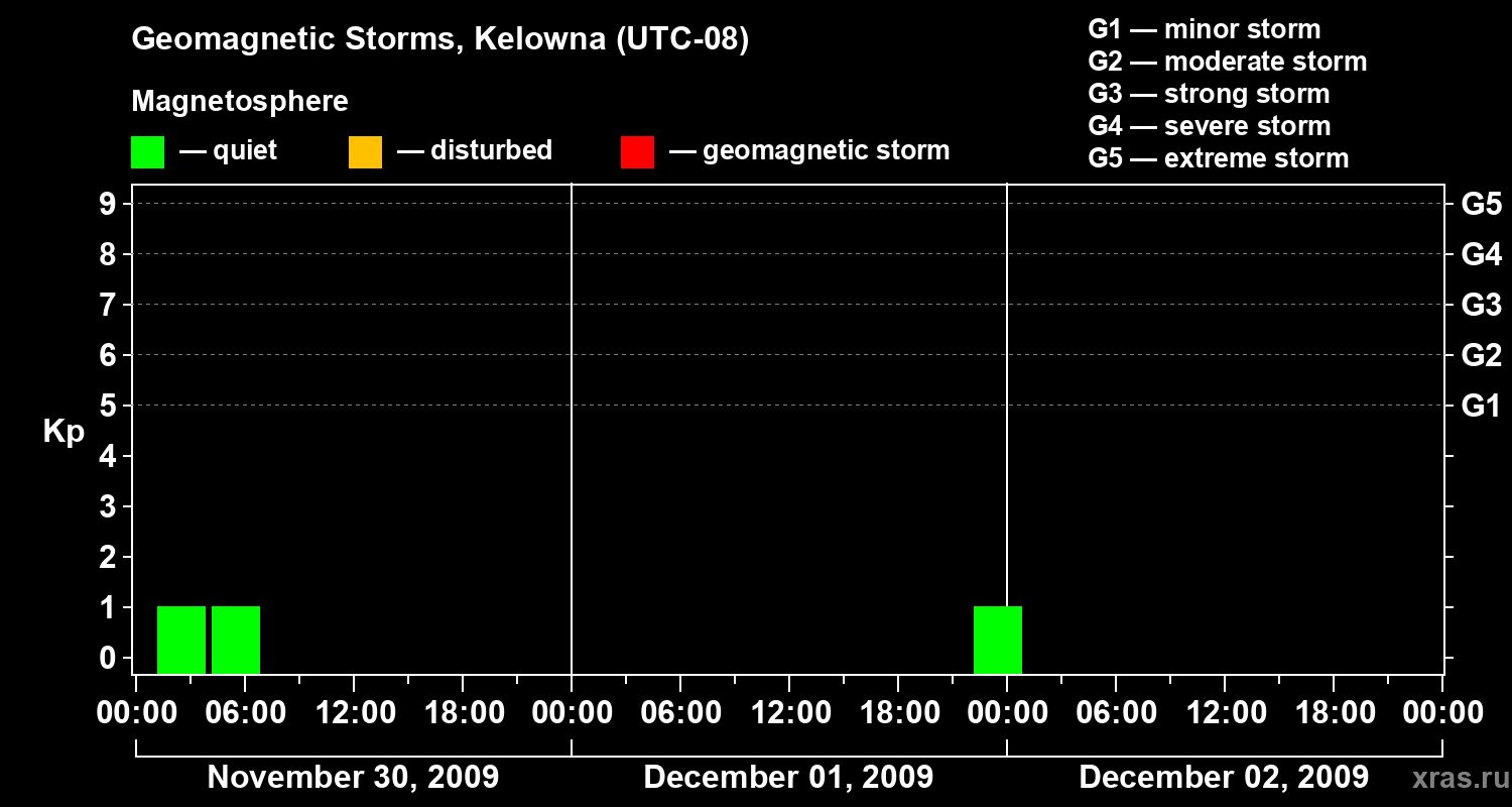 Geomagnetic storms in Kelowna on Dec 02, 2009