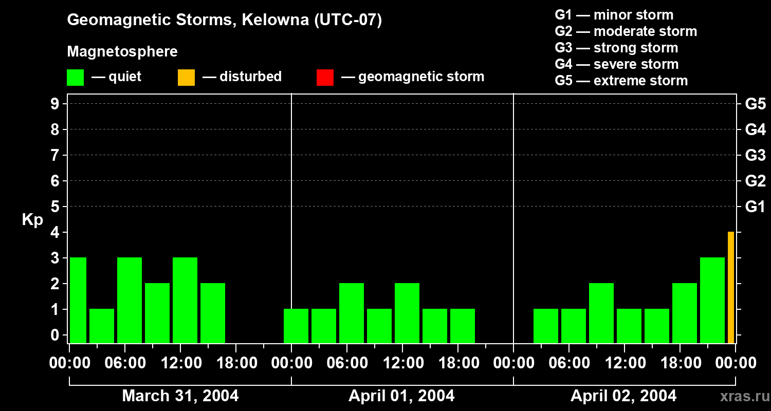 Geomagnetic storms in Kelowna — Apr 02, 2004