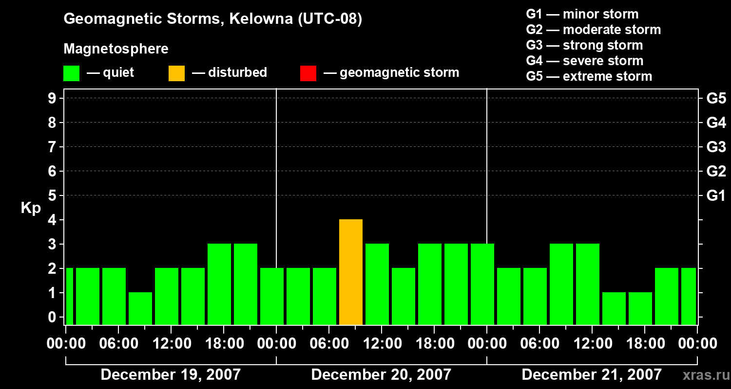 Geomagnetic storms in Kelowna on Dec 21, 2007
