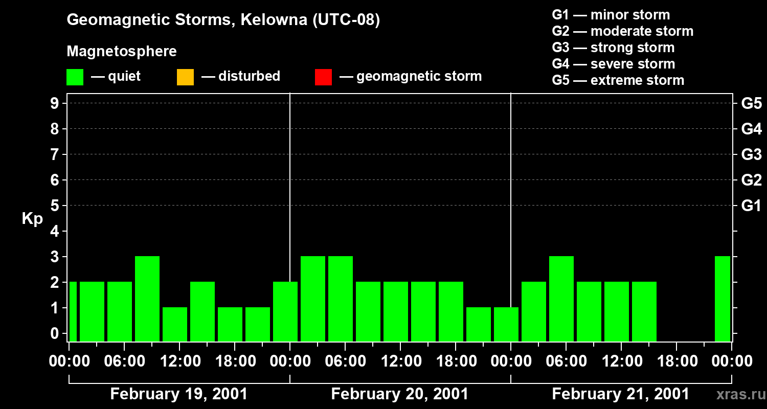 Geomagnetic storms in Kelowna on Feb 21, 2001