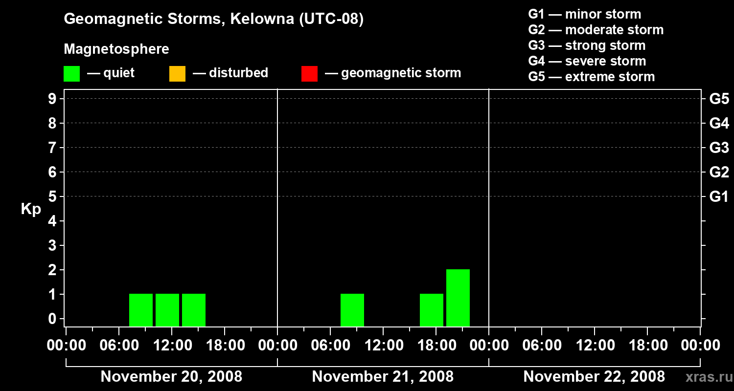 Geomagnetic storms in Kelowna on Nov 22, 2008