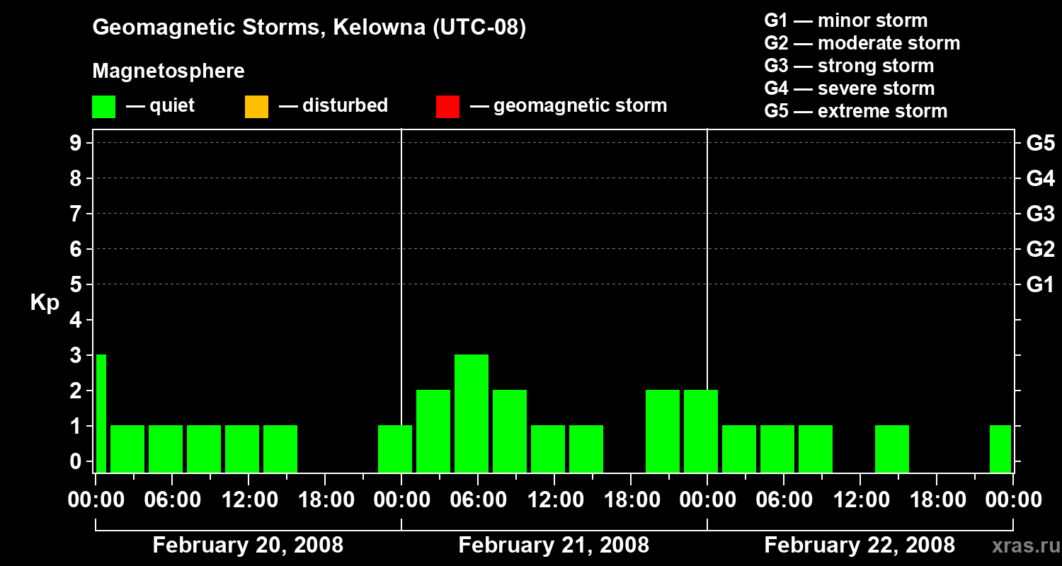 Geomagnetic storms in Kelowna in February 2008