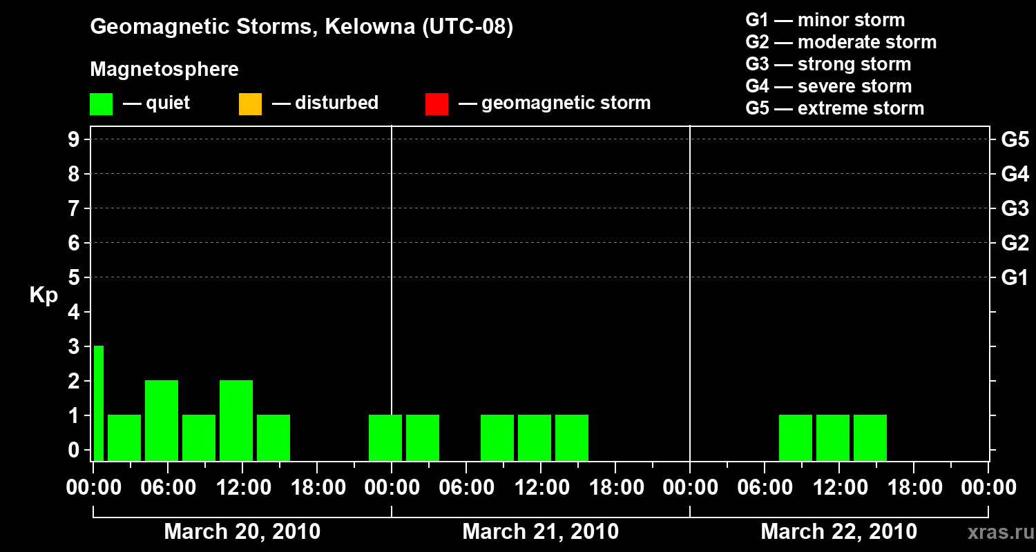 Geomagnetic storms in Kelowna in March 2010