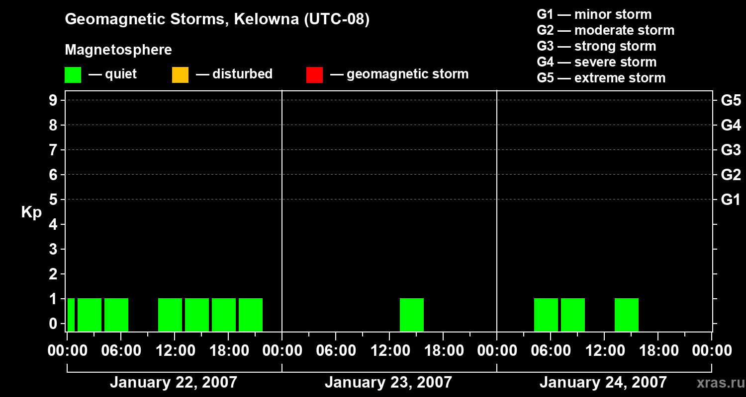 Geomagnetic storms in Kelowna on Jan 24, 2007