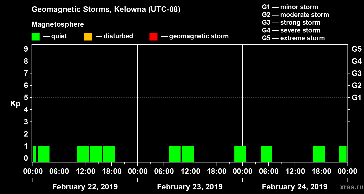 Geomagnetic storms in Kelowna on Feb 24, 2019