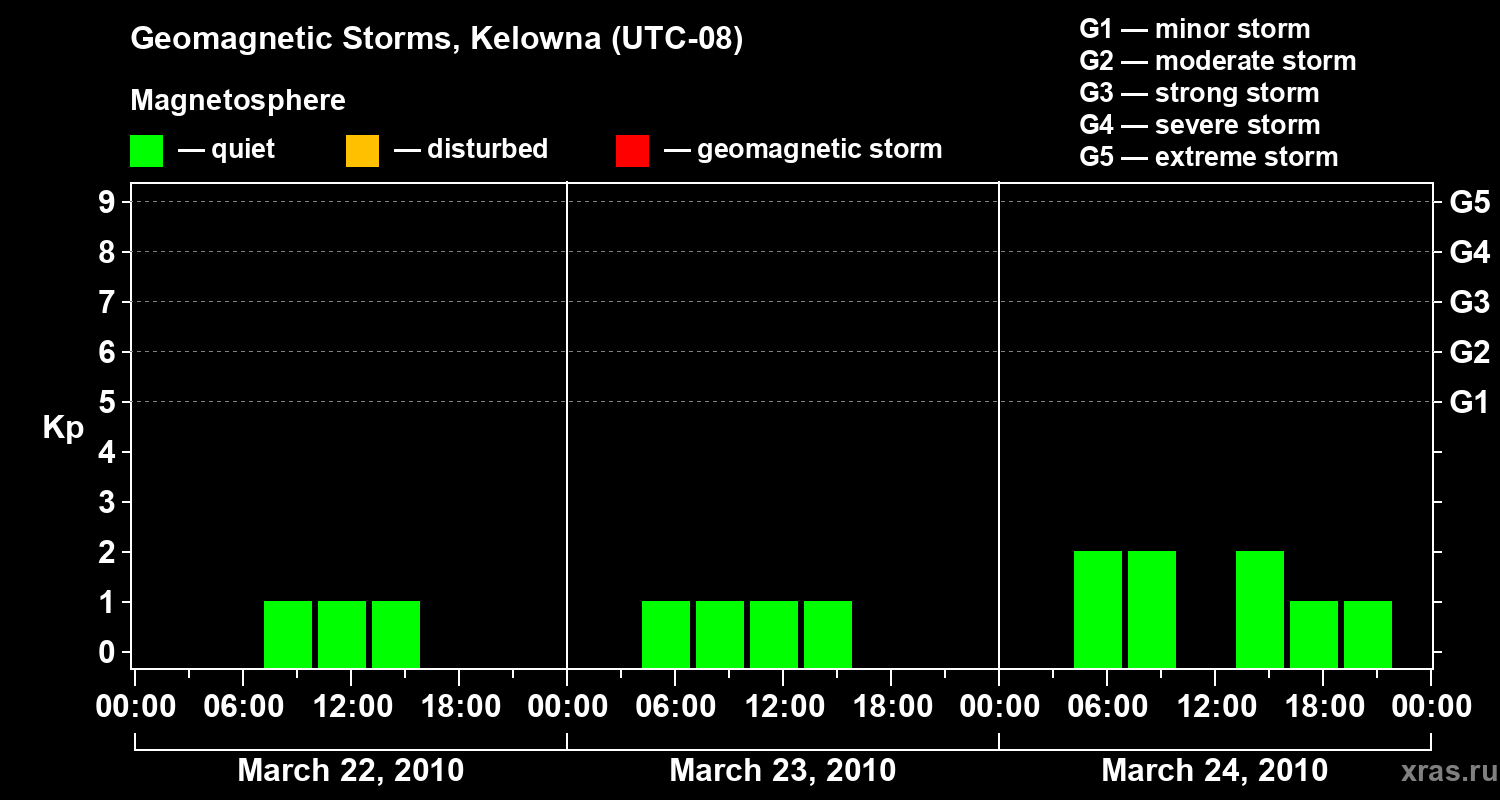 Geomagnetic storms in Kelowna on Mar 24, 2010