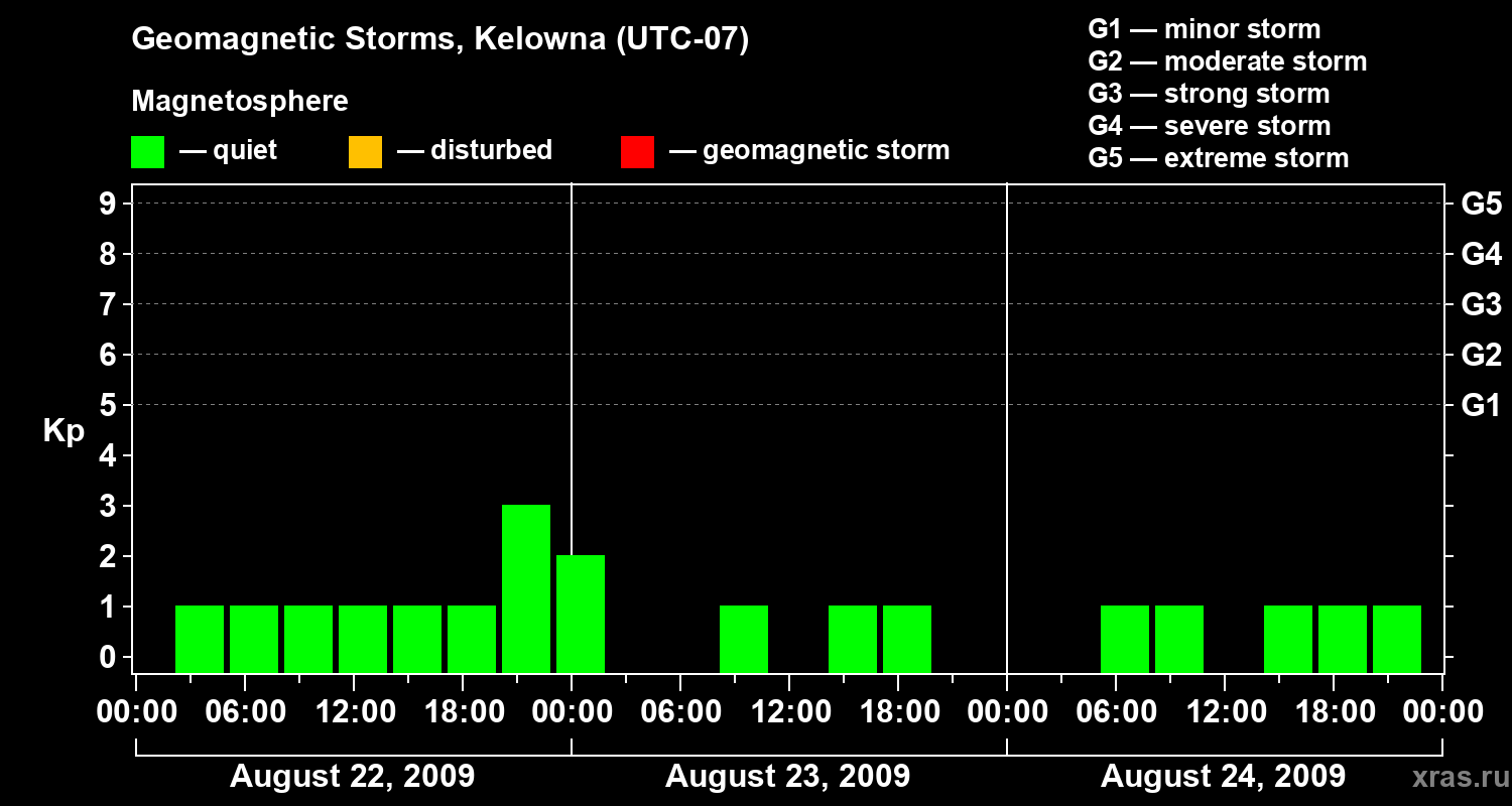 Geomagnetic storms in Kelowna on Aug 24, 2009