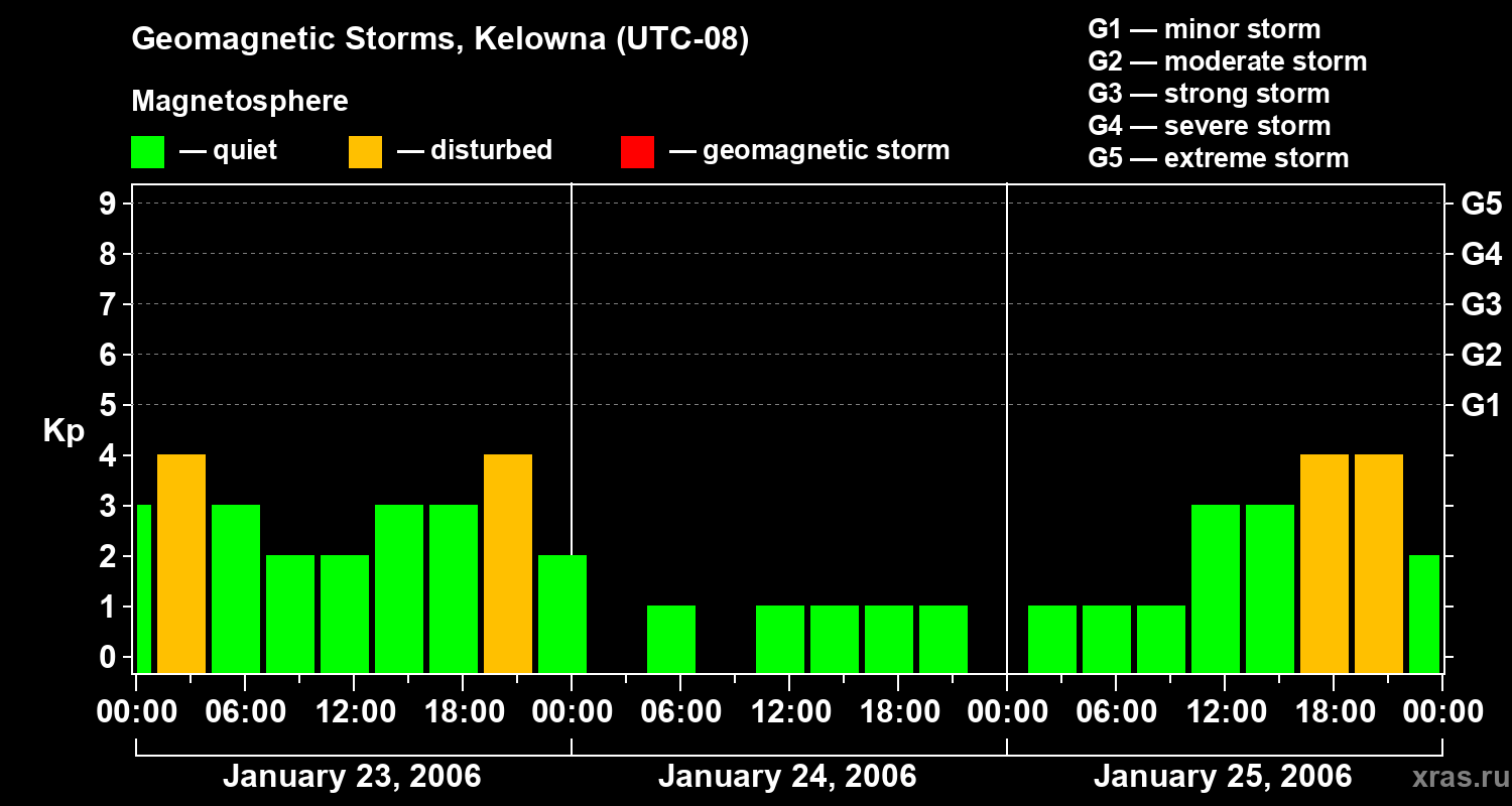 Geomagnetic storms in Kelowna on Jan 25, 2006