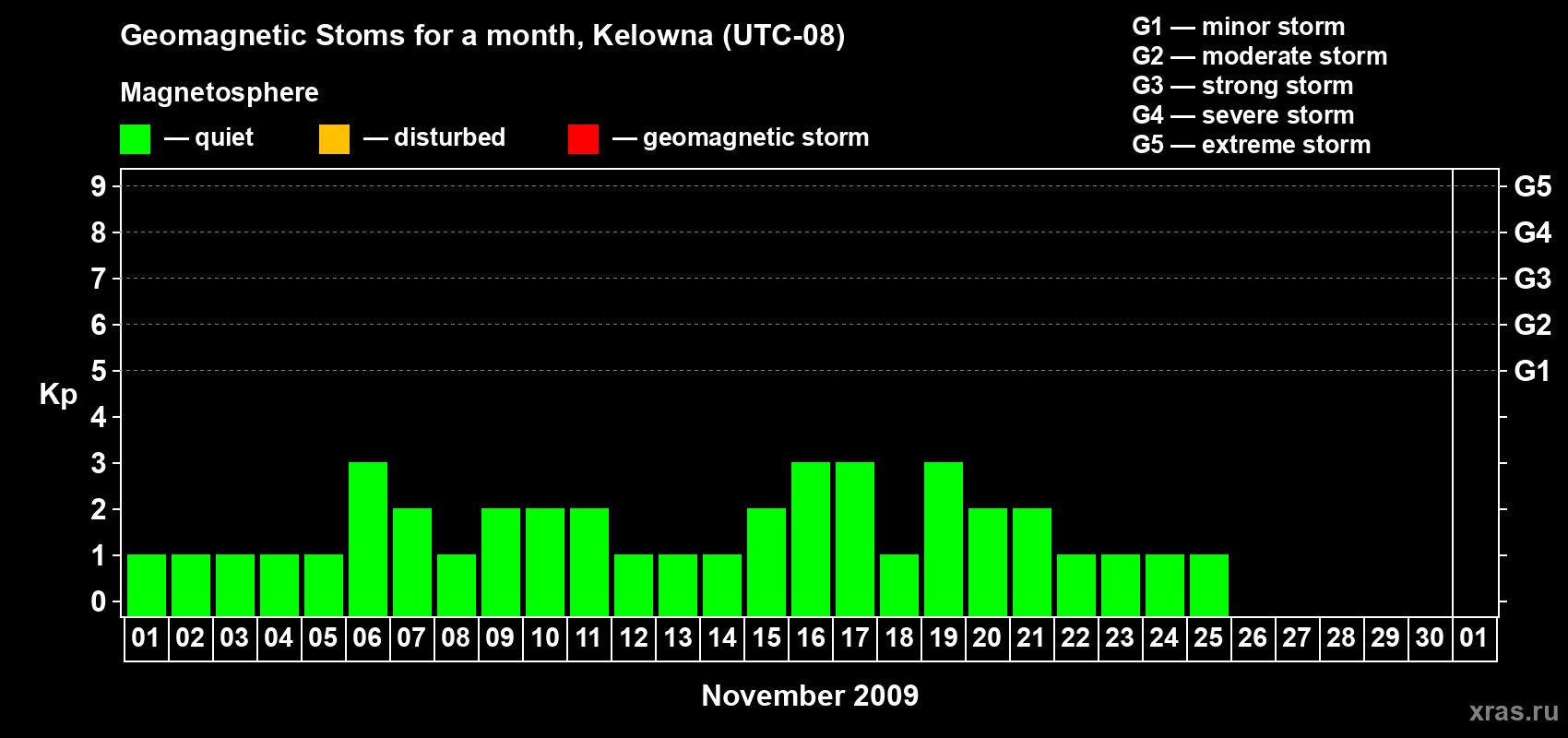 Geomagnetic storms in Kelowna on Nov 25, 2009