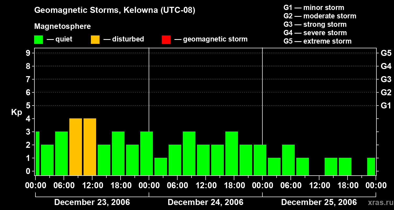 Geomagnetic storms in Kelowna on Dec 25, 2006