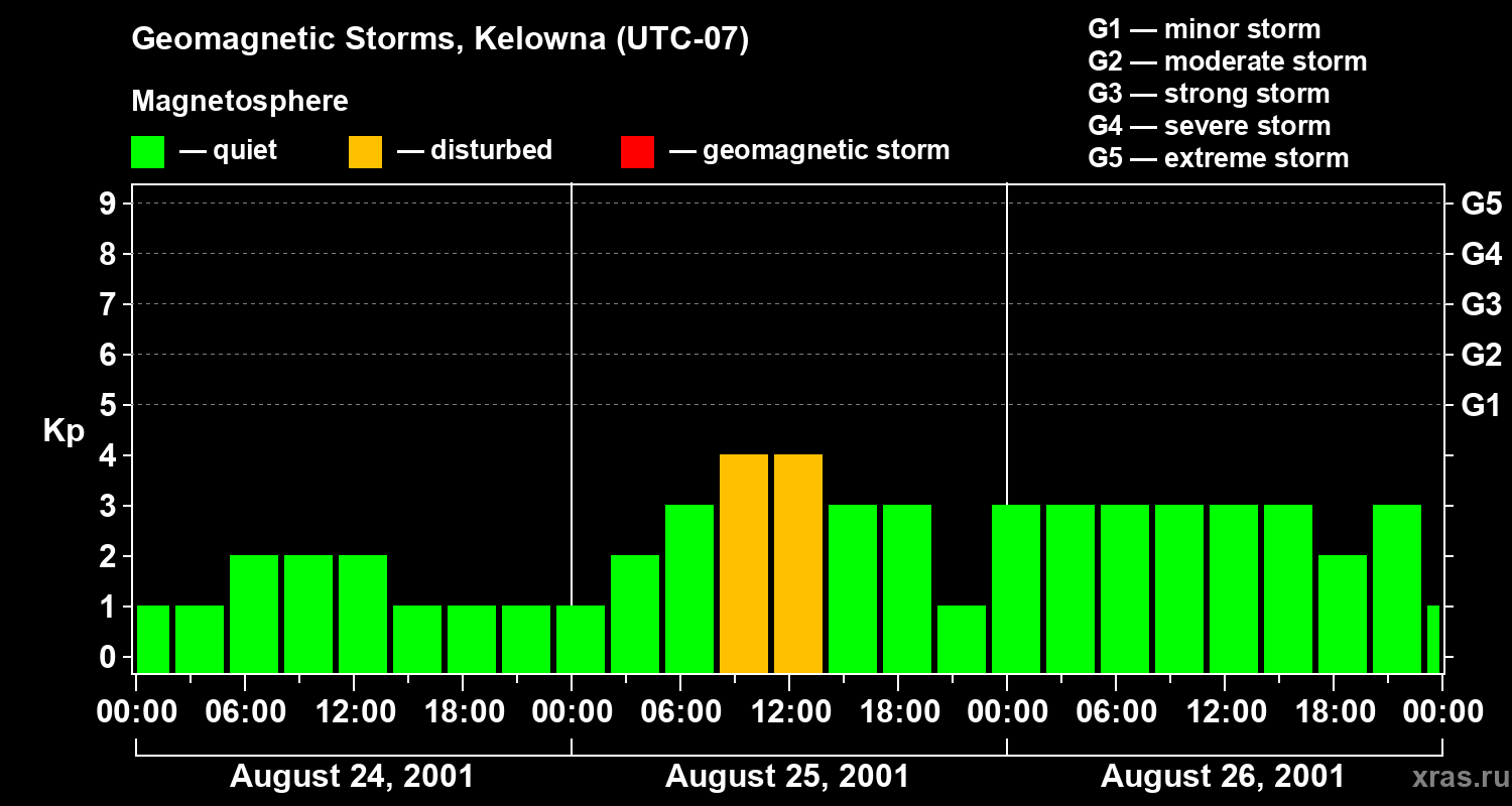 Geomagnetic storms in Kelowna on Aug 26, 2001