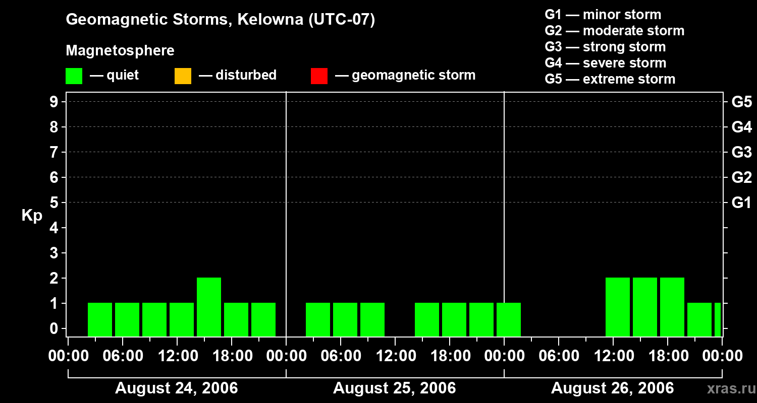 Geomagnetic storms in Kelowna on Aug 26, 2006