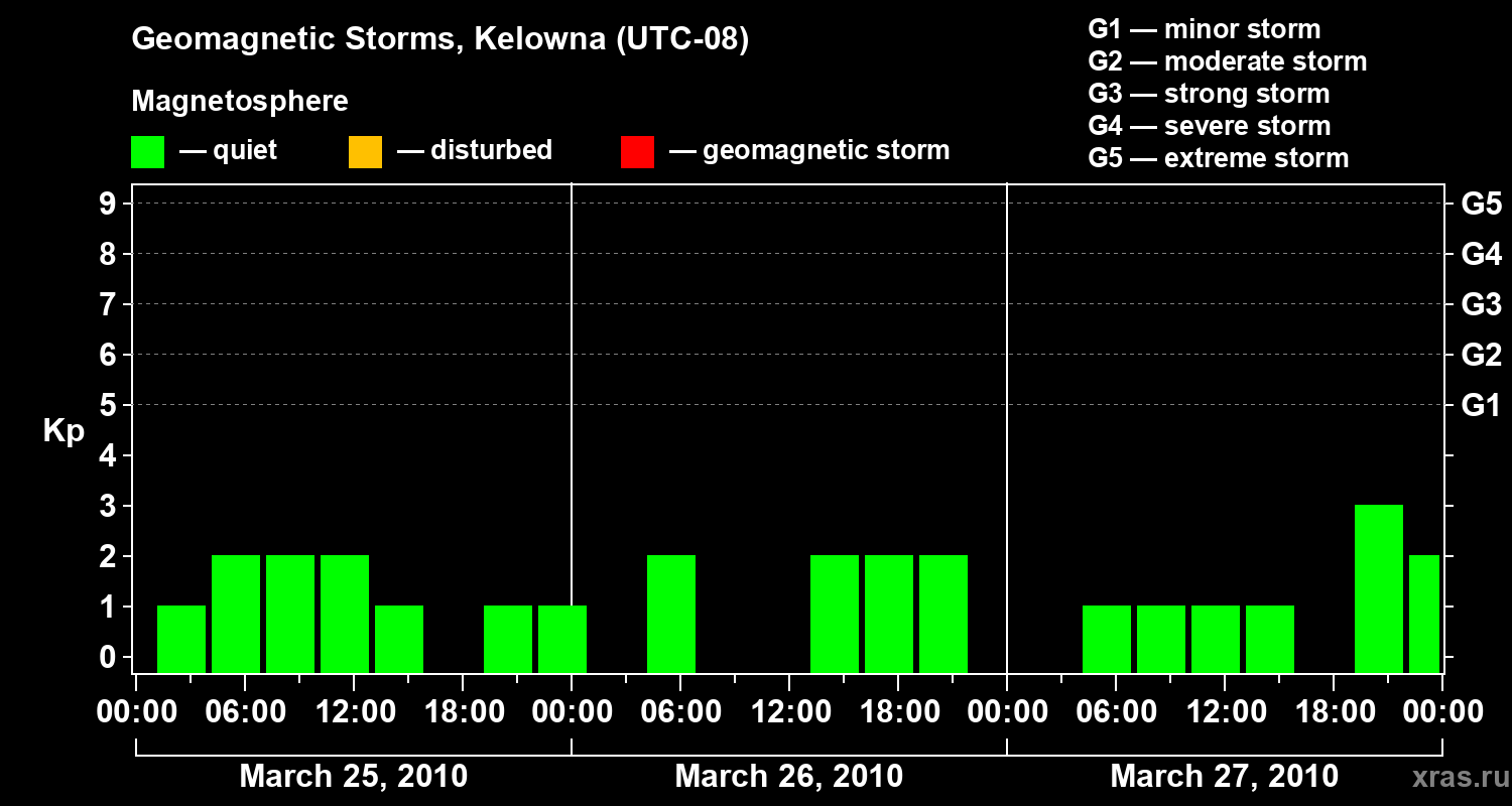 Geomagnetic storms in Kelowna in March 2010