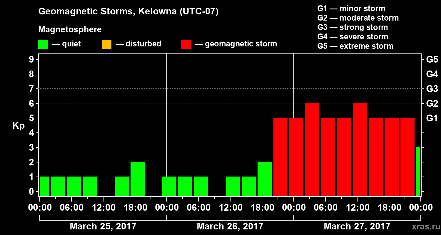 Geomagnetic storms in Kelowna — Mar 27, 2017